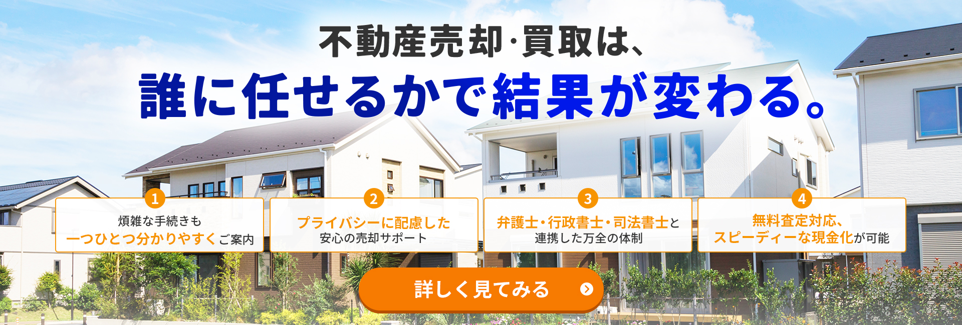 弊社は、不動産(戸建て・マンション・土地など)の「ご購入」と「ご売却」のお手伝いをさせていただく会社です。
