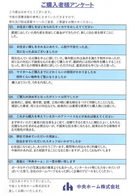 - Q7.最後に中央ホームに一言お願い致します
